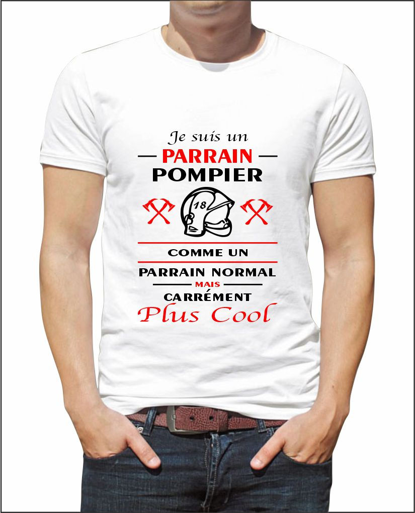 T-shirt je suis un PARRAIN pompier comme un parrain normal mais plus cool I006